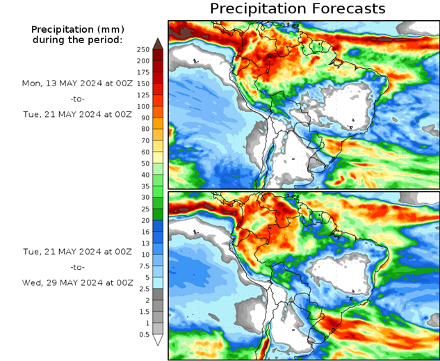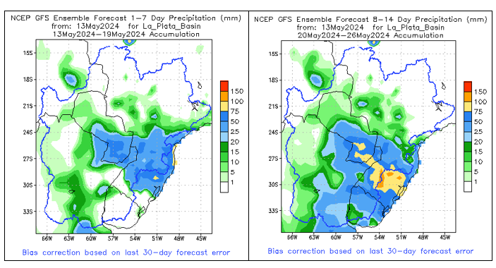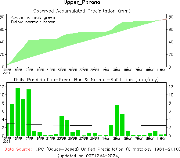 El pronóstico Hidrometeorológico del Centro Climático de referencia indica una tendencia semanal de leve significancia hidrológica en la cuenca de interés para la CHY con dispersión geográfica según sea la fuente consultada. (Ver gráfico Nro. 1).