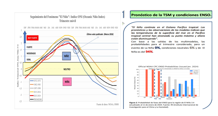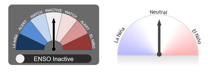 El Niño continúa y está cerca de su fin. Los modelos climáticos indican que se espera que las temperaturas de la superficie del mar en el Pacífico tropical central vuelvan a ser neutras en ENSO más adelante.