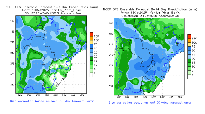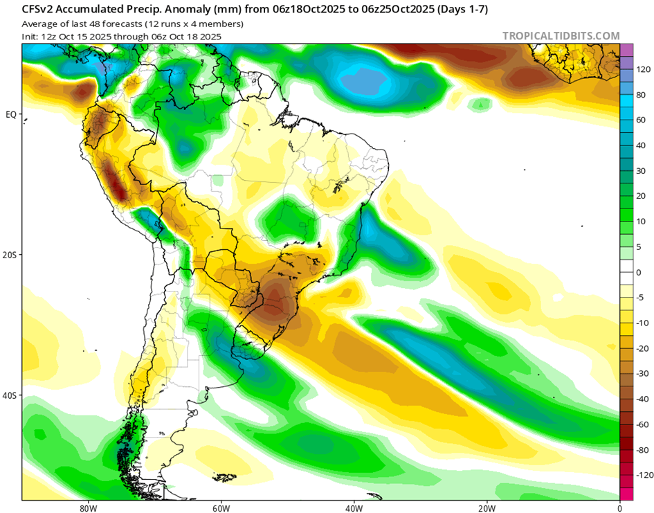 El fenómeno de El Niño-Oscilación del Sur (ENOS) se mantiene neutral. El último valor relativo del índice de temperatura superficial del mar (TSM) Niño3.4 para la semana que finalizó el 28 de septiembre de 2025 es de -0,80 °C. Los valores entre -0,8 °C y +0,8 °C se consideran neutrales respecto al ENOS, mientras que los valores sostenidos por debajo de -0,8 °C (durante al menos tres meses) se consideran indicativos de La Niña.