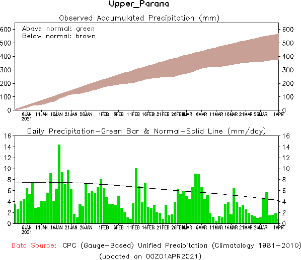 El pronóstico Hidrometeorológico del Centro Climático de referencia indica una tendencia semanal de poca significancia hidrológica en la cuenca de interés para la CHY con dispersión geográfica según sea la fuente consultada. (Ver gráfico Nro. 1).