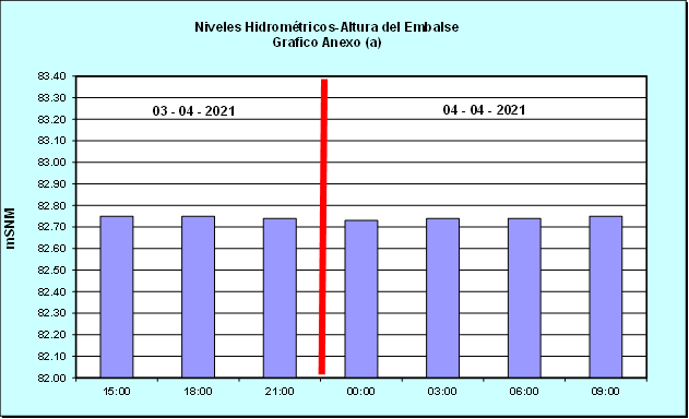 Nivel de Ayer (06:00 hs) = 82.76 mSNM Nivel de Hoy (06:00 hs) = 82.74 mSNM