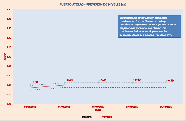 Las previsiones de Alturas son realizadas considerando las condiciones actuales y pronósticos disponibles y están sujetas a revisión en función de eventuales cambios en las condiciones hidrometeorológicas y de las descargas de las C.H. aguas arriba de la CHY.
