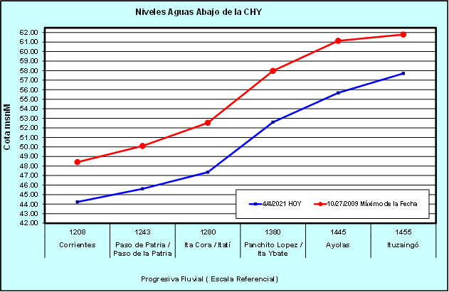 REFERENCIA: a modo de información – valores que originan riesgos de inundación en la zona de Ayolas.