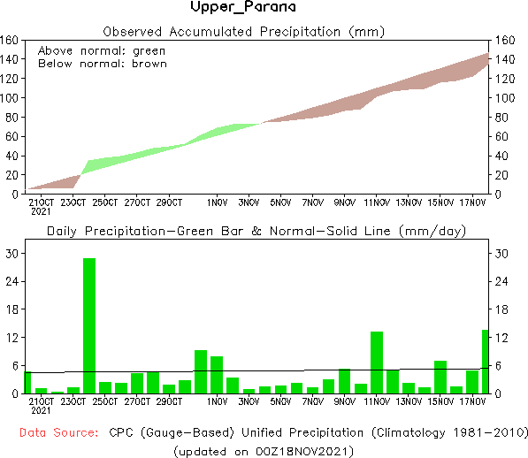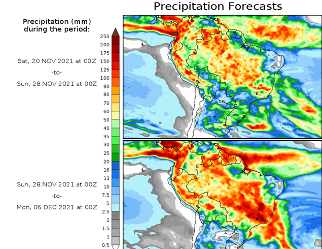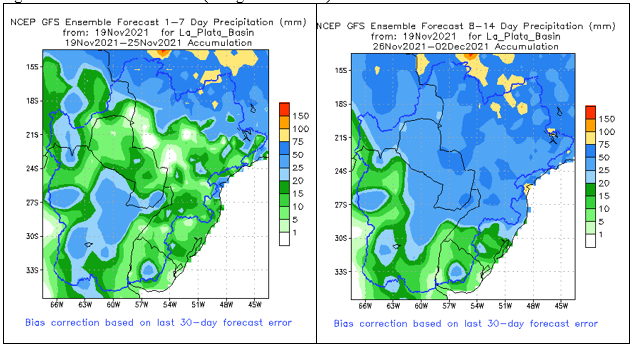 El pronóstico Hidrometeorológico del Centro Climático de referencia indica una tendencia semanal de poca significancia hidrológica en la cuenca de interés para la CHY con dispersión geográfica según sea la fuente consultada. (Ver gráfico Nro. 1).