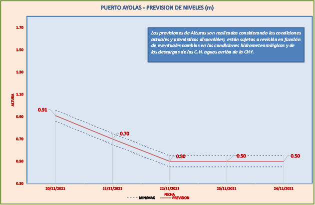 Las previsiones de Alturas son realizadas considerando las condiciones actuales y pronósticos disponibles y están sujetas a revisión en función de eventuales cambios en las condiciones hidrometeorológicas y de las descargas de las C.H. aguas arriba de la CHY.