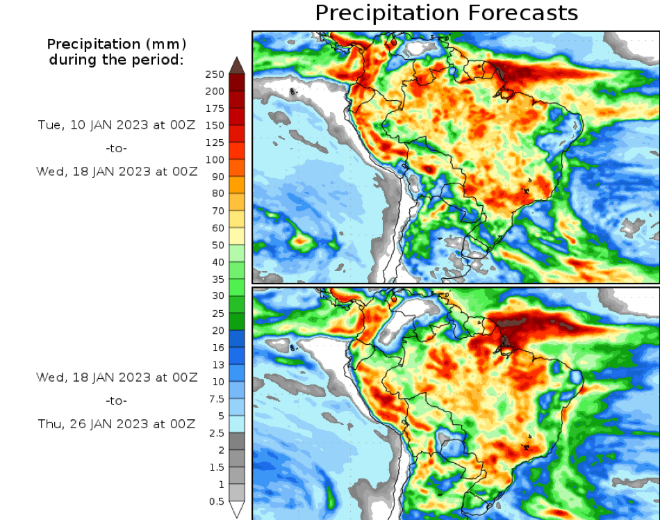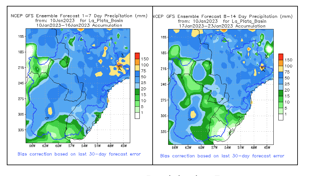 El pronóstico Hidrometeorológico del Centro Climático de referencia indica una tendencia semanal de poca significancia hidrológica en la cuenca de interés para la CHY con dispersión geográfica según sea la fuente consultada. (Ver gráfico Nro. 1).