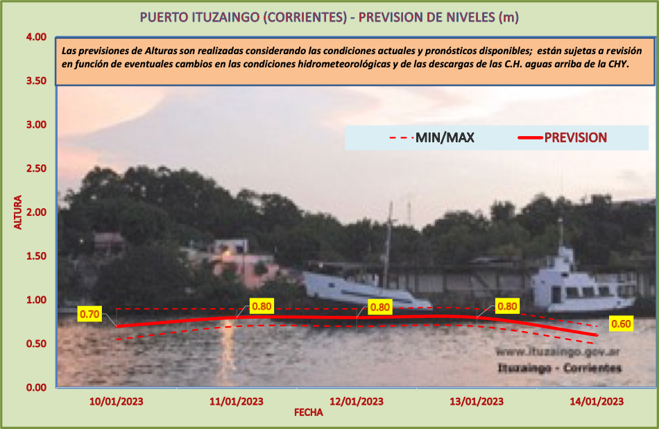 Las previsiones de Alturas son realizadas considerando las condiciones actuales y pronósticos disponibles y están sujetas a revisión en función de eventuales cambios en las condiciones hidrometeorológicas y de las descargas de las C.H. aguas arriba de la CHY.
