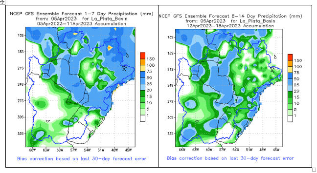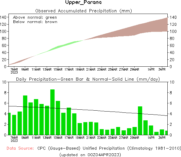 El pronóstico Hidrometeorológico del Centro Climático de referencia indica una tendencia semanal de poca significancia hidrológica en la cuenca de interés para la CHY con dispersión geográfica según sea la fuente consultada. (Ver gráfico Nro. 1).