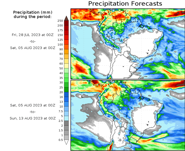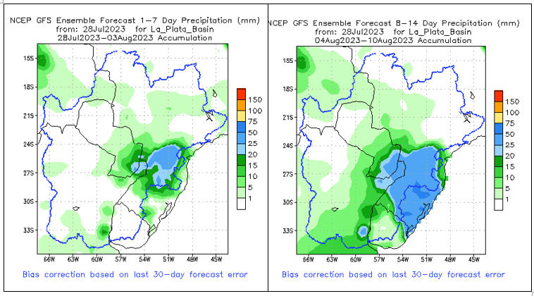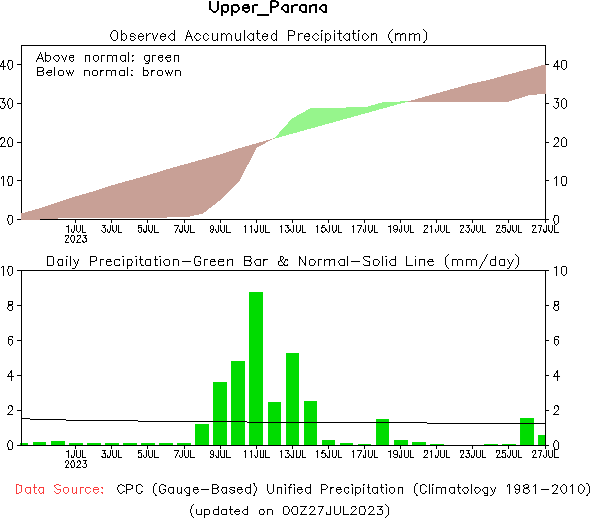 El pronóstico Hidrometeorológico del Centro Climático de referencia indica una tendencia semanal de poca significancia hidrológica en la cuenca de interés para la CHY con dispersión geográfica según sea la fuente consultada. (Ver gráfico Nro. 1).