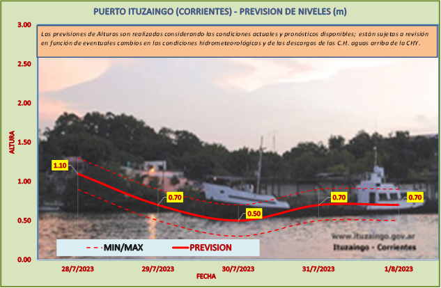 Las previsiones de Alturas son realizadas considerando las condiciones actuales y pronósticos disponibles y están sujetas a revisión en función de eventuales cambios en las condiciones hidrometeorológicas y de las descargas de las C.H. aguas arriba de la CHY.