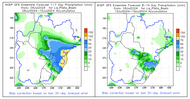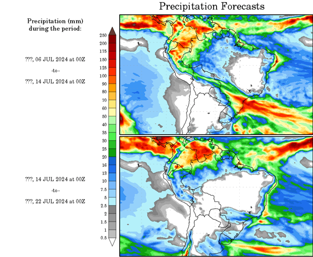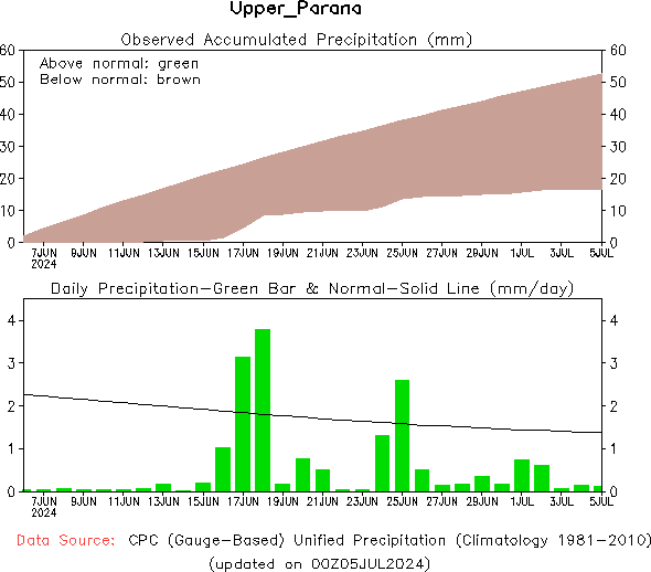 El pronóstico Hidrometeorológico del Centro Climático de referencia indica una tendencia semanal de poca significancia hidrológica en la cuenca de interés para la CHY con dispersión geográfica según sea la fuente consultada. (Ver gráfico Nro. 1).