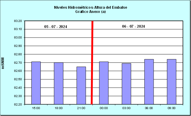 Nivel de Ayer (06:00 hs) = 82.71 mSNM Nivel de Hoy (06:00 hs) = 82.74 mSNM