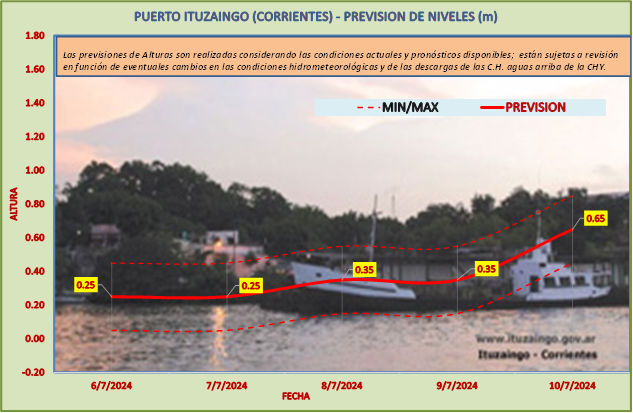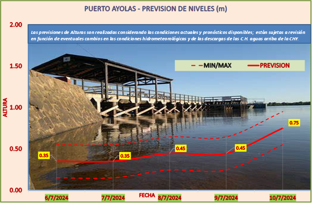 Las previsiones de Alturas son realizadas considerando las condiciones actuales y pronósticos disponibles y están sujetas a revisión en función de eventuales cambios en las condiciones hidrometeorológicas y de las descargas de las C.H. aguas arriba de la CHY.