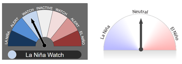 La Perspectiva ENSO se encuentra actualmente en ‘Vigilancia de La Niña’, lo que significa que hay algunas señales de que La Niña podría formarse en el Océano Pacífico más adelante en 2024. Los indicadores atmosféricos y oceánicos se encuentran actualmente dentro de los umbrales neutrales de ENSO.