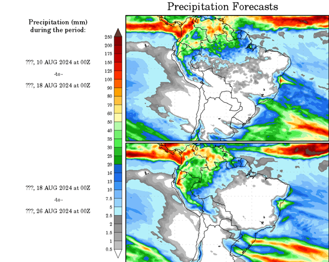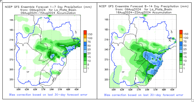 El pronóstico Hidrometeorológico del Centro Climático de referencia indica una tendencia semanal de poca significancia hidrológica en la cuenca de interés para la CHY con dispersión geográfica según sea la fuente consultada. (Ver gráfico Nro. 1).