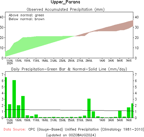 En el Puerto de Ayolas se registró una altura de 1.10 m, mientras que se espera que los niveles acompañen la tendencia de los caudales.