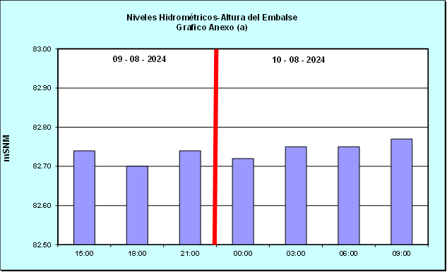 Nivel de Ayer (06:00 hs) = 82.77 mSNM Nivel de Hoy (06:00 hs) = 82.74 mSNM