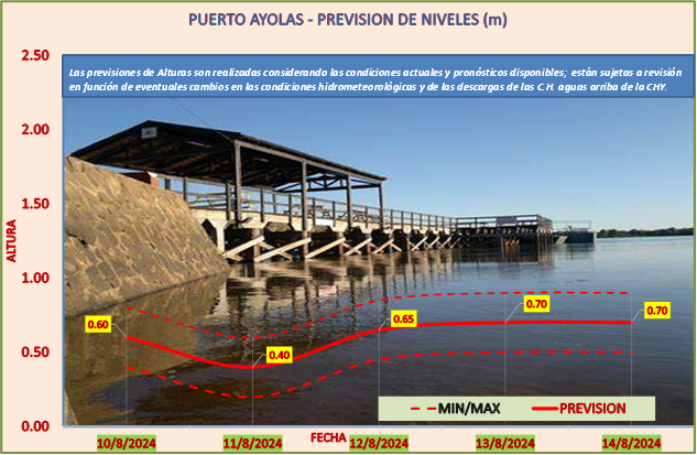 Las previsiones de Alturas son realizadas considerando las condiciones actuales y pronósticos disponibles y están sujetas a revisión en función de eventuales cambios en las condiciones hidrometeorológicas y de las descargas de las C.H. aguas arriba de la CHY.