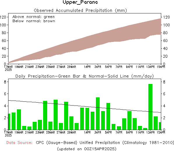 Para el trimestre considerado, se prevén valores infeiores a la normal en gran parte de la región oriental, mientras que en el resto del territorio nacional, se esperan condiciones normales.