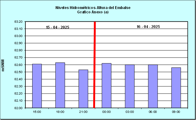 Nivel de Ayer (06:00 hs) = 82.74 mSNM Nivel de Hoy (06:00 hs) = 82.60 Msnm