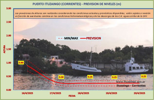 Las previsiones de Alturas son realizadas considerando las condiciones actuales y pronósticos disponibles y están sujetas a revisión en función de eventuales cambios en las condiciones hidrometeorológicas y de las descargas de las C.H. aguas arriba de la CHY.