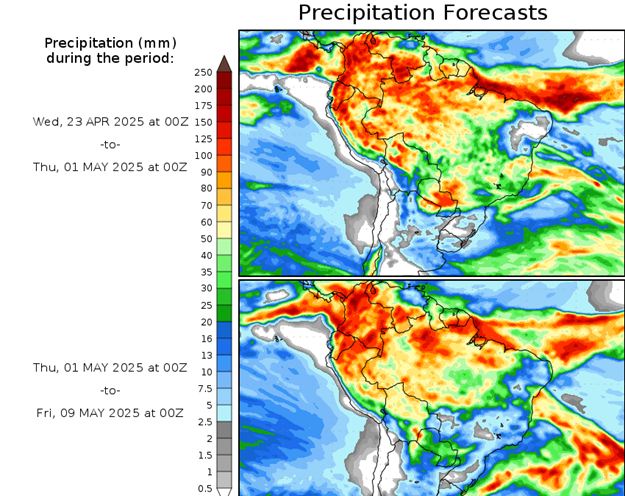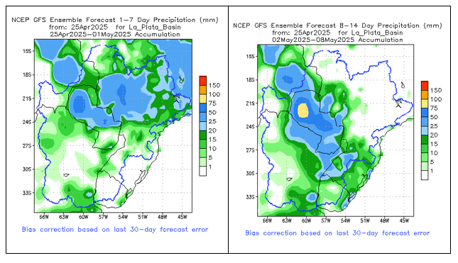 El pronóstico Hidrometeorológico del Centro Climático de referencia indica una tendencia semanal de poca significancia hidrológica en la cuenca de interés para la CHY con dispersión geográfica según sea la fuente consultada. (Ver gráfico Nro. 1).