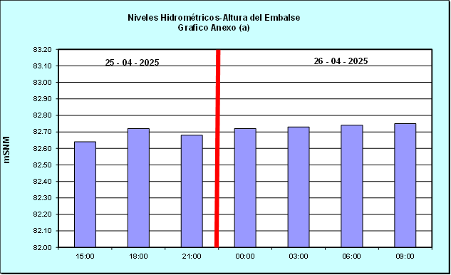 Nivel de Ayer (06:00 hs) = 82.78 mSNM Nivel de Hoy (06:00 hs) = 82.74 Msnm