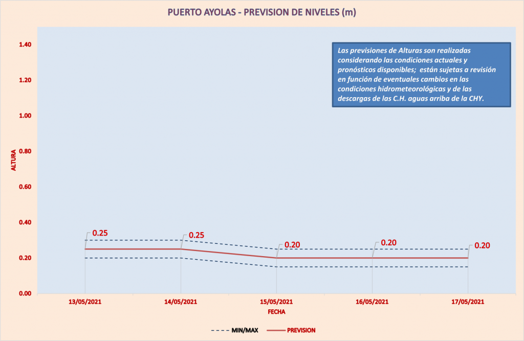 Las previsiones de Alturas son realizadas considerando las condiciones actuales y pronósticos disponibles y están sujetas a revisión en función de eventuales cambios en las condiciones hidrometeorológicas y de las descargas de las C.H. aguas arriba de la CHY.
