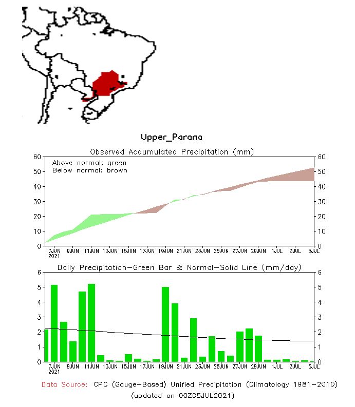 Los embalses de acumulación del Brasil que se ubican en la cuenca alta del río Paraná, aguas arriba de la Central Hidroeléctrica de Yacyretá, se encuentran con volúmenes útiles y niveles muy por debajo de lo normal debido a las escasas precipitaciones registradas.