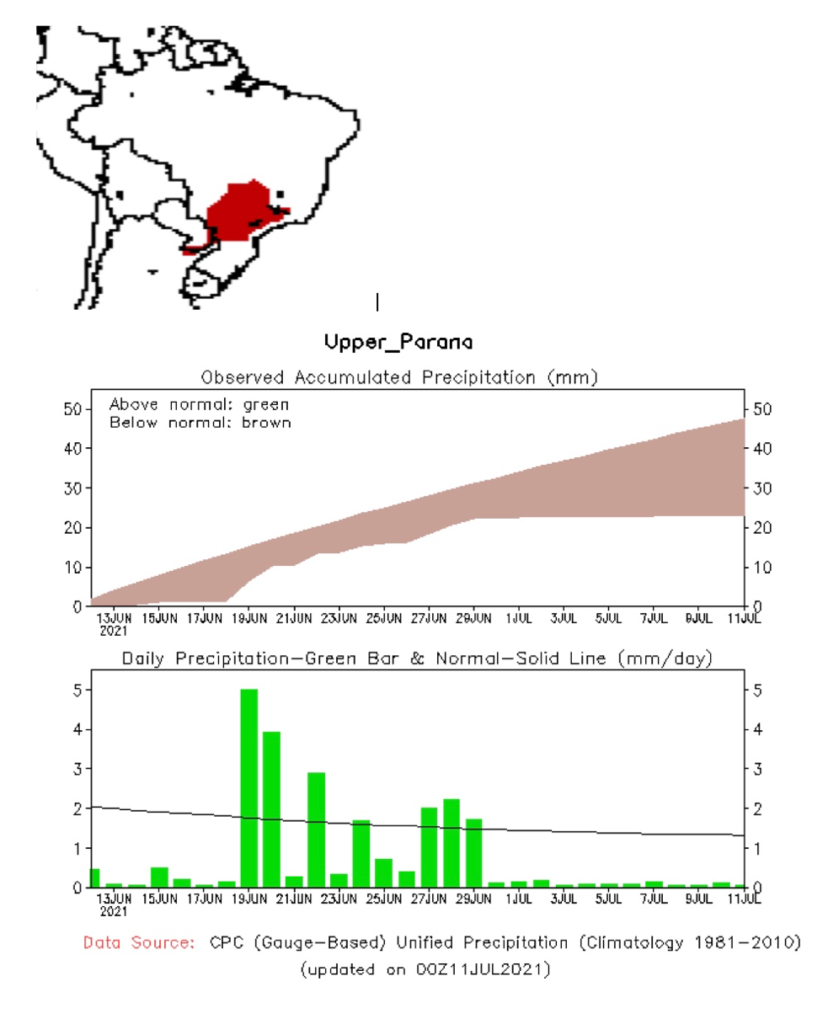 Los embalses de acumulación del Brasil que se ubican en la cuenca alta del río Paraná, aguas arriba de la Central Hidroeléctrica de Yacyretá, se encuentran con volúmenes útiles y niveles muy por debajo de lo normal debido a las escasas precipitaciones registradas.
