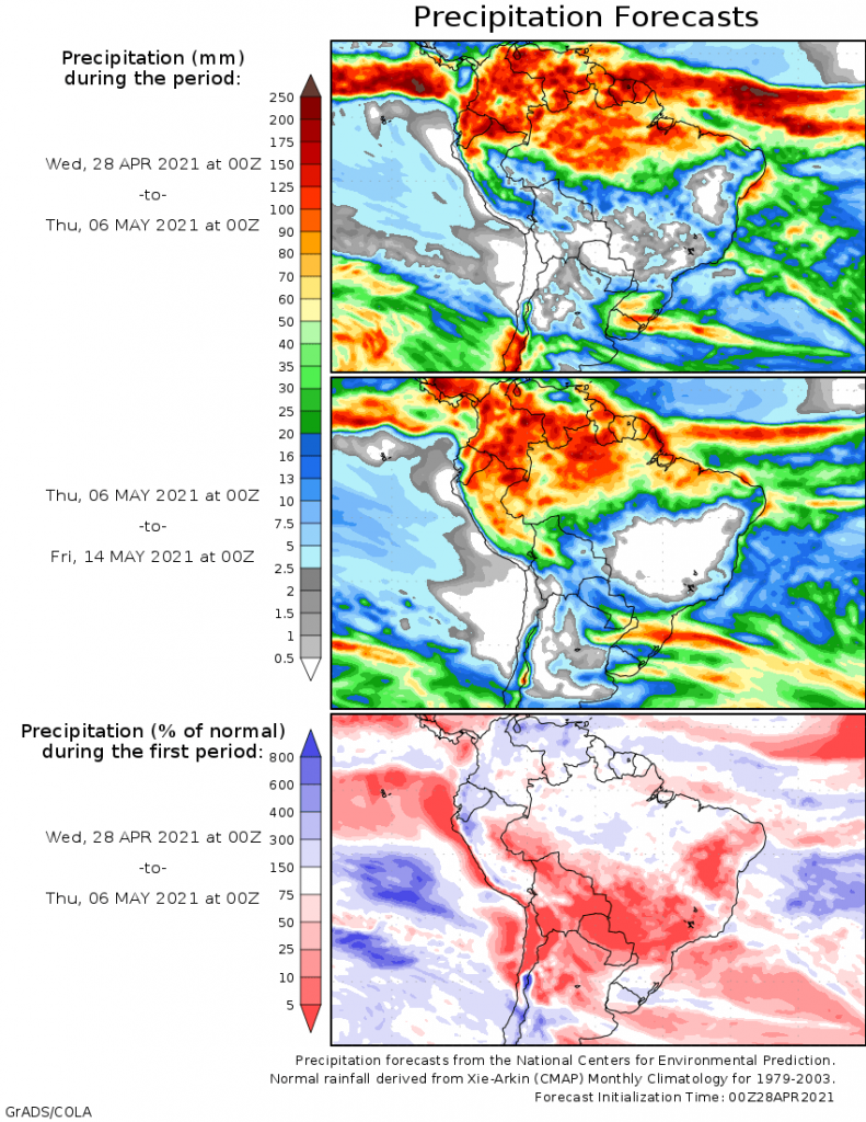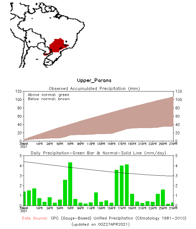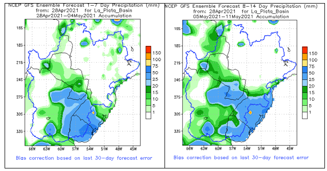El pronóstico Hidrometeorológico del Centro Climático de referencia indica una tendencia semanal de poca significancia hidrológica en la cuenca de interés para la CHY con dispersión geográfica según sea la fuente consultada. (Ver gráfico Nro. 1).