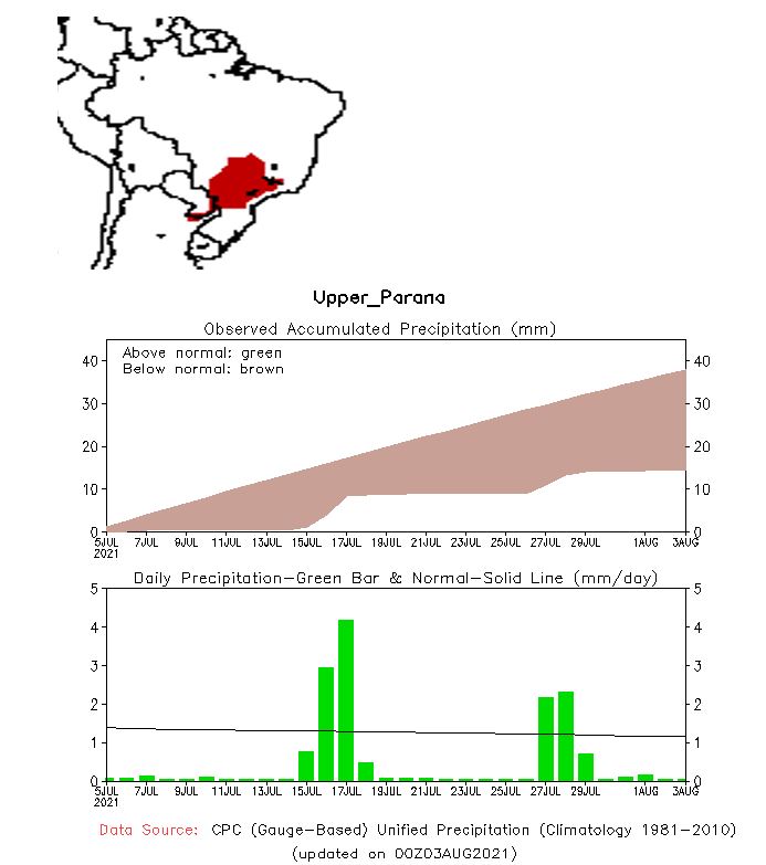 Los embalses de acumulación del Brasil que se ubican en la cuenca alta del río Paraná, aguas arriba de la Central Hidroeléctrica de Yacyretá, se encuentran con volúmenes útiles y niveles muy por debajo de lo normal debido a las escasas precipitaciones registradas.