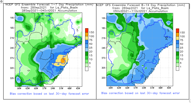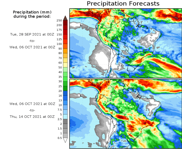 El pronóstico Hidrometeorológico del Centro Climático de referencia indica una tendencia semanal de poca significancia hidrológica en la cuenca de interés para la CHY con dispersión geográfica según sea la fuente consultada. (Ver gráfico Nro. 1).