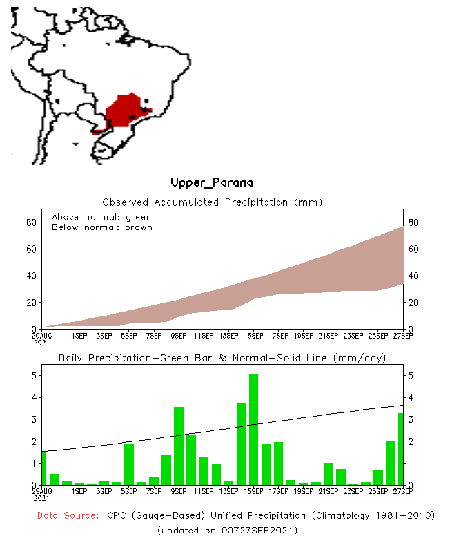 Los embalses de acumulación del Brasil que se ubican en la cuenca alta del río Paraná, aguas arriba de la Central Hidroeléctrica de Yacyretá, se encuentran con volúmenes útiles y niveles muy por debajo de lo normal debido a las escasas precipitaciones registradas.