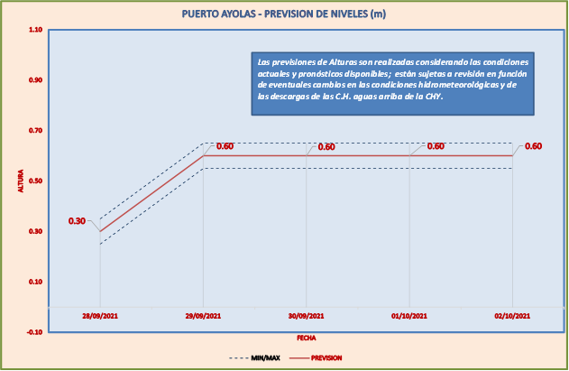 Las previsiones de Alturas son realizadas considerando las condiciones actuales y pronósticos disponibles y están sujetas a revisión en función de eventuales cambios en las condiciones hidrometeorológicas y de las descargas de las C.H. aguas arriba de la CHY.