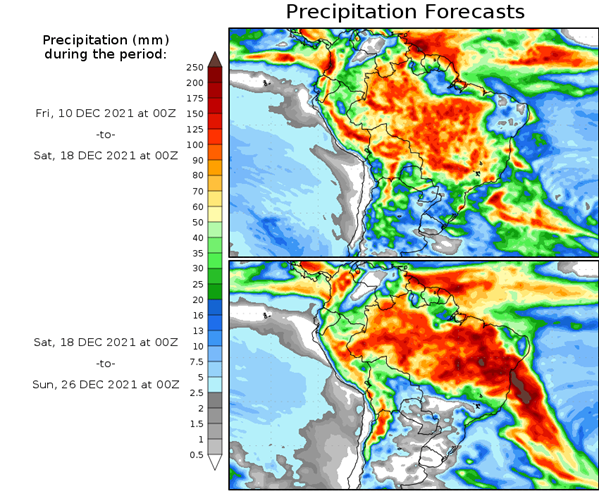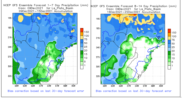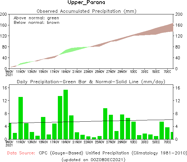 El pronóstico Hidrometeorológico del Centro Climático de referencia indica una tendencia semanal de poca significancia hidrológica en la cuenca de interés para la CHY con dispersión geográfica según sea la fuente consultada. (Ver gráfico Nro. 1).