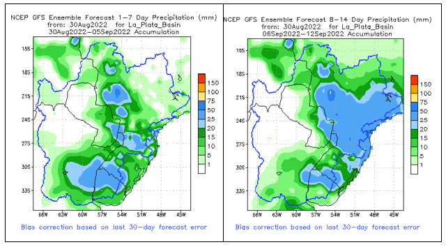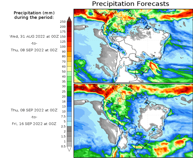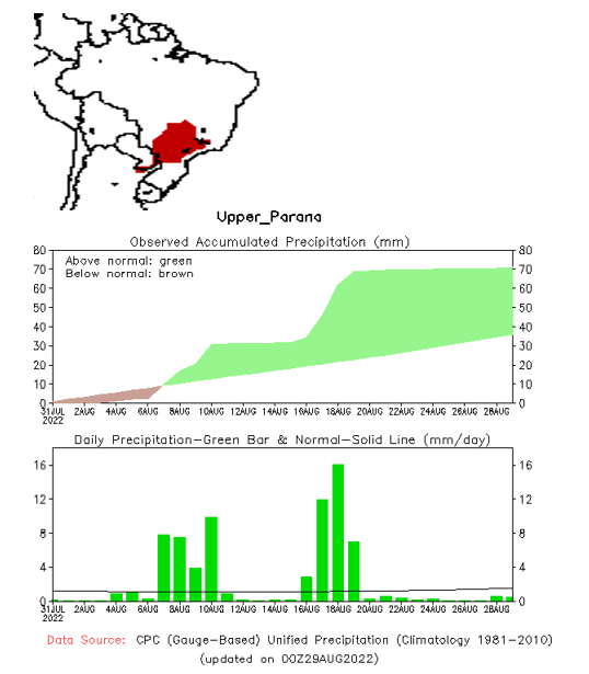 El pronóstico Hidrometeorológico del Centro Climático de referencia indica una tendencia semanal de poca significancia hidrológica en la cuenca de interés para la CHY con dispersión geográfica según sea la fuente consultada. (Ver gráfico Nro. 1).