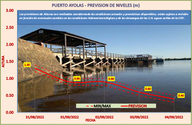 Las previsiones de Alturas son realizadas considerando las condiciones actuales y pronósticos disponibles y están sujetas a revisión en función de eventuales cambios en las condiciones hidrometeorológicas y de las descargas de las C.H. aguas arriba de la CHY.