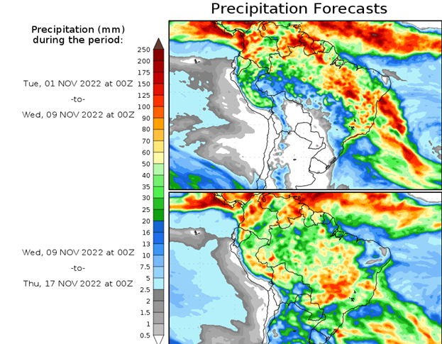 El pronóstico Hidrometeorológico del Centro Climático de referencia indica una tendencia semanal de significancia hidrológica en la cuenca de interés para la CHY con dispersión geográfica según sea la fuente consultada. (Ver gráfico Nro. 1).