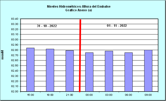 Nivel de Ayer (06:00 hs) = 82.86 mSNM Nivel de Hoy (06:00 hs) = 82.75 Msnm