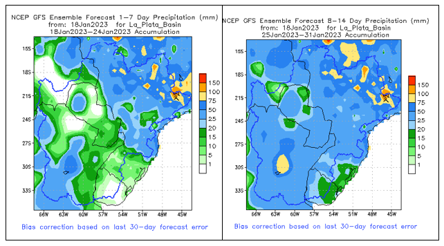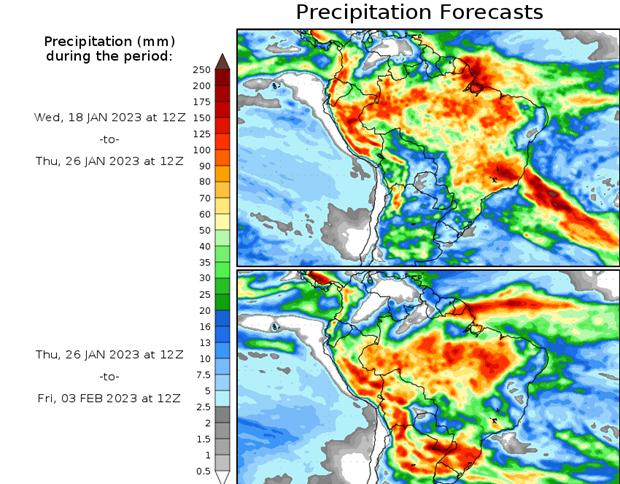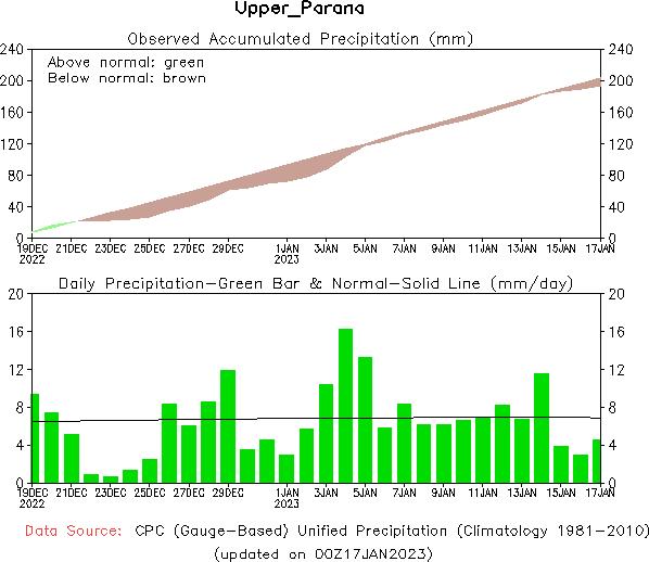 El pronóstico Hidrometeorológico del Centro Climático de referencia indica una tendencia semanal de poca significancia hidrológica en la cuenca de interés para la CHY con dispersión geográfica según sea la fuente consultada. (Ver gráfico Nro. 1).