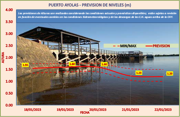 Las previsiones de Alturas son realizadas considerando las condiciones actuales y pronósticos disponibles y están sujetas a revisión en función de eventuales cambios en las condiciones hidrometeorológicas y de las descargas de las C.H. aguas arriba de la CHY.