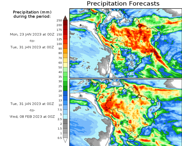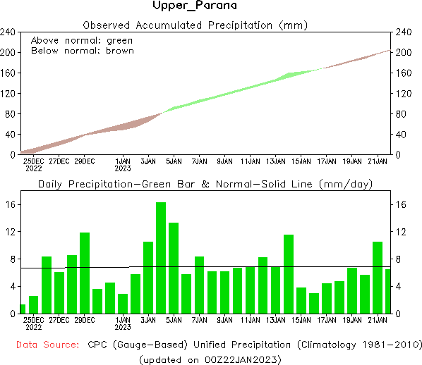 El pronóstico Hidrometeorológico del Centro Climático de referencia indica una tendencia semanal de significancia hidrológica en la cuenca de interés para la CHY con dispersión geográfica según sea la fuente consultada. (Ver gráfico Nro. 1).