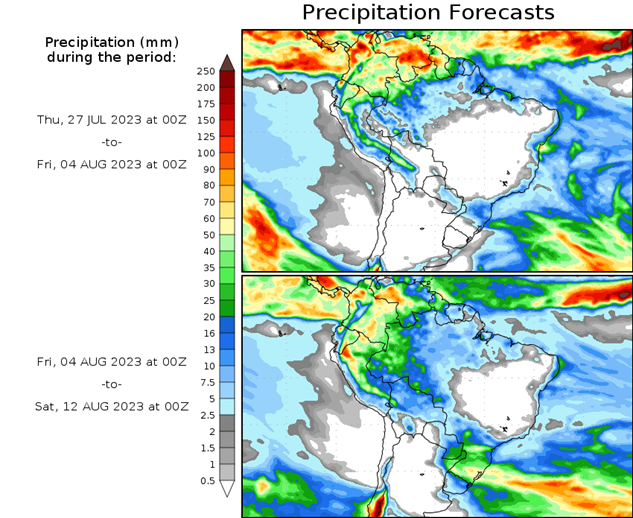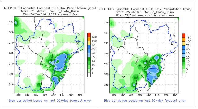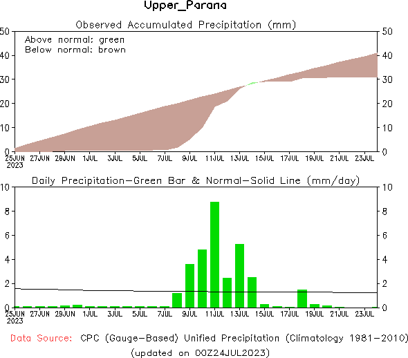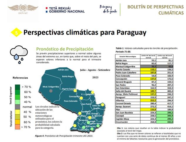 El pronóstico Hidrometeorológico del Centro Climático de referencia indica una tendencia semanal de poca significancia hidrológica en la cuenca de interés para la CHY con dispersión geográfica según sea la fuente consultada. (Ver gráfico Nro. 1).