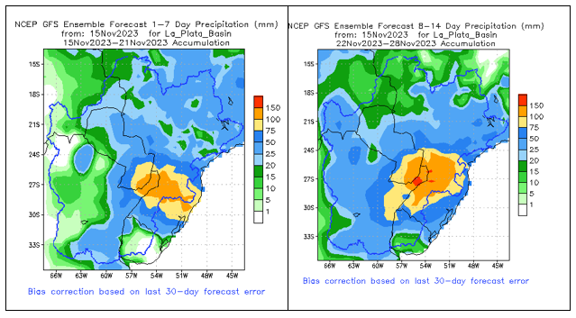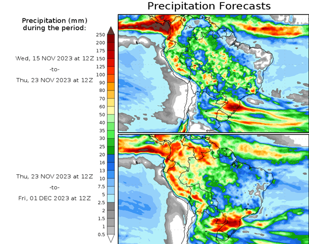 El pronóstico Hidrometeorológico del Centro Climático de referencia indica una tendencia semanal de significancia hidrológica en la cuenca de interés para la CHY con dispersión geográfica según sea la fuente consultada. (Ver gráfico Nro. 1).