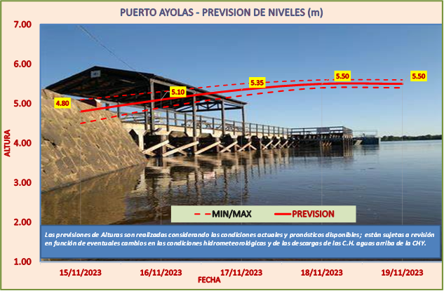 Las previsiones de Alturas son realizadas considerando las condiciones actuales y pronósticos disponibles y están sujetas a revisión en función de eventuales cambios en las condiciones hidrometeorológicas y de las descargas de las C.H. aguas arriba de la CHY.