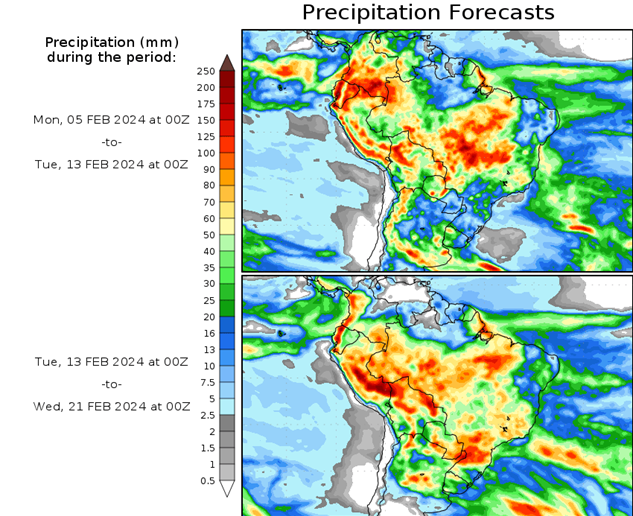 El pronóstico Hidrometeorológico del Centro Climático de referencia indica una tendencia semanal de poca significancia hidrológica en la cuenca de interés para la CHY con dispersión geográfica según sea la fuente consultada. (Ver gráfico Nro. 1).
