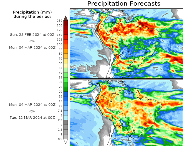 El pronóstico Hidrometeorológico del Centro Climático de referencia indica una tendencia semanal de poca significancia hidrológica en la cuenca de interés para la CHY con dispersión geográfica según sea la fuente consultada. (Ver gráfico Nro. 1).