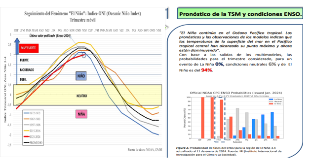 La evolución de índices climáticos publicados por organismos especializados de referencia, vinculados con la previsión del fenómeno caracterizado como “El Niño”, hace prever con un grado de probabilidad alto, que durante el periodo enero y marzo 2024 podrían verificarse eventos hidrológicos asociados a situaciones de aguas altas.