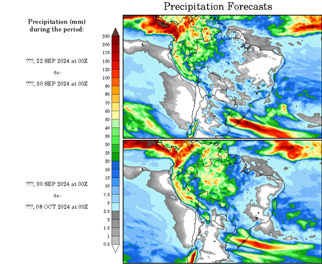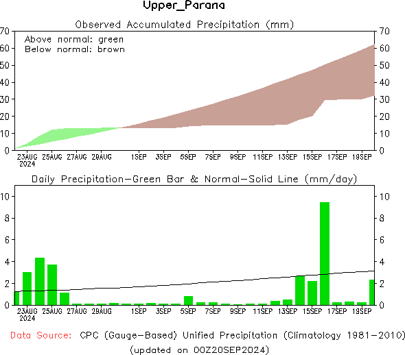 El pronóstico Hidrometeorológico del Centro Climático de referencia indica una tendencia semanal de poca significancia hidrológica en la cuenca de interés para la CHY con dispersión geográfica según sea la fuente consultada. (Ver gráfico Nro. 1).